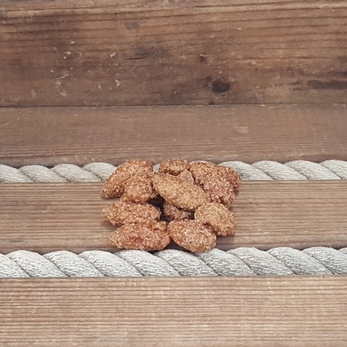 Tillverkade som förr i tiden i kopparpanna. Californisk mandel som smaksätts med bland annat Honung Lakrits och Vaniljsocker. En av våra mest sålda produkter utan lakrits och den produkt som vi startade hela karamellfabriken med. Nu har vi gjort en variant med lakrits-smak. Just nu även i röd påse !! Skriv "röd" i fältet för kommentarer.